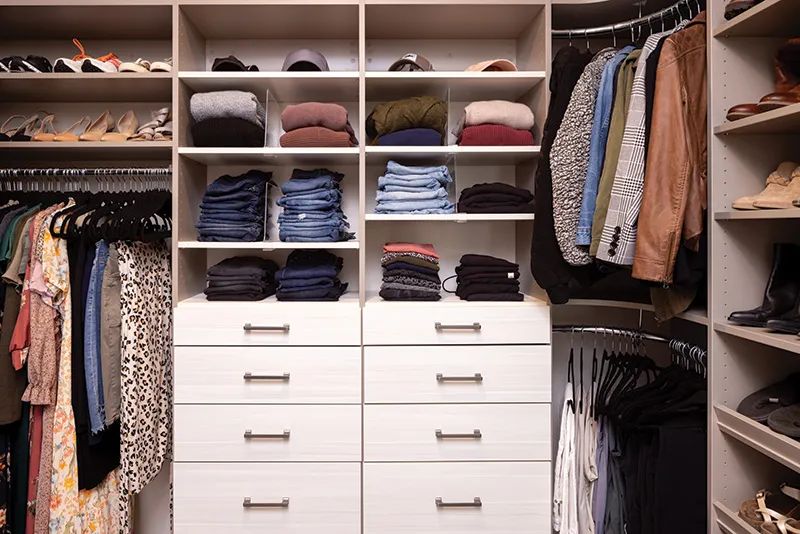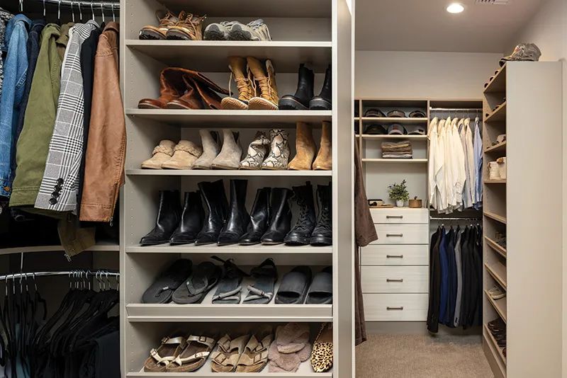 Incorporating Color: Many homeowners are adding colors and two-tone finishes into their closet systems. From vibrant hues to subtle tones, adding color to your closet can breathe new life into your space. Anita suggests jazzing up your closet with colorful finishes and hardware to create a visually appealing, personalized storage solution.