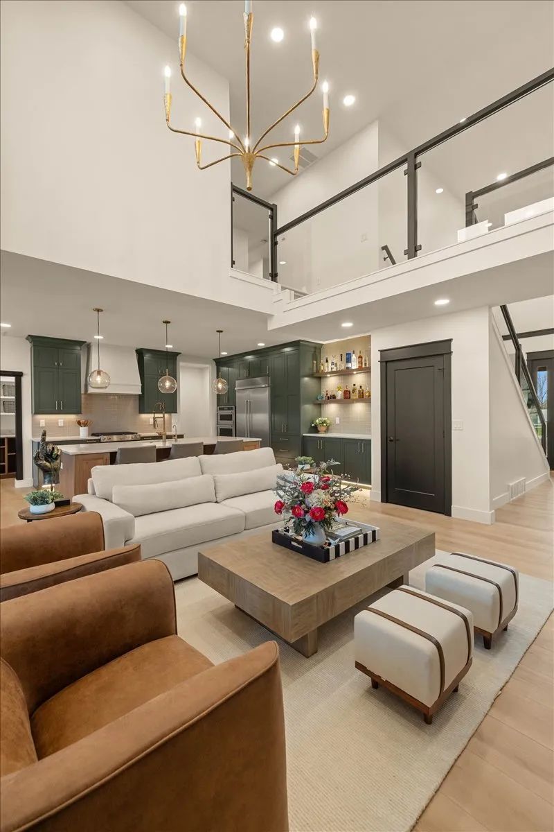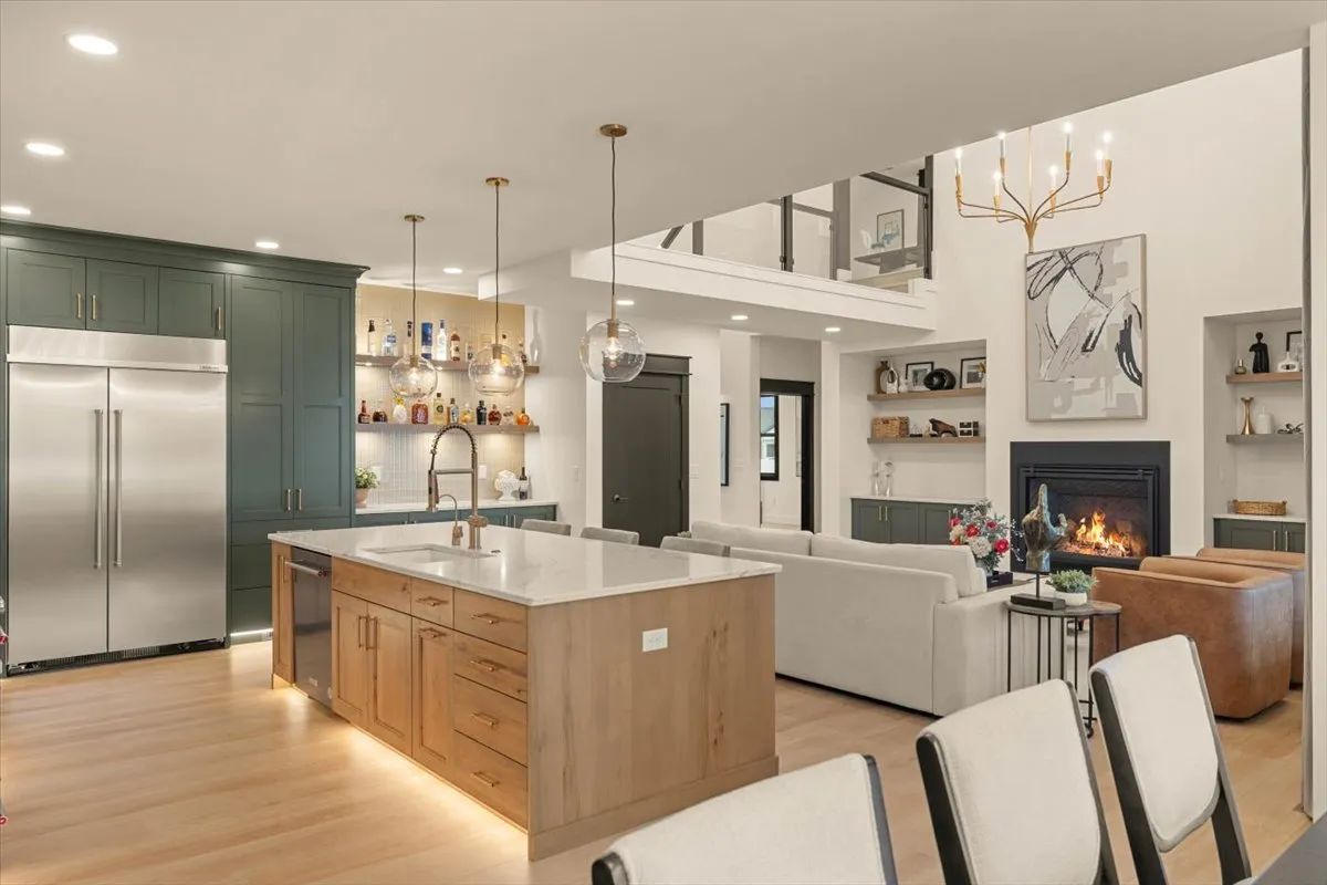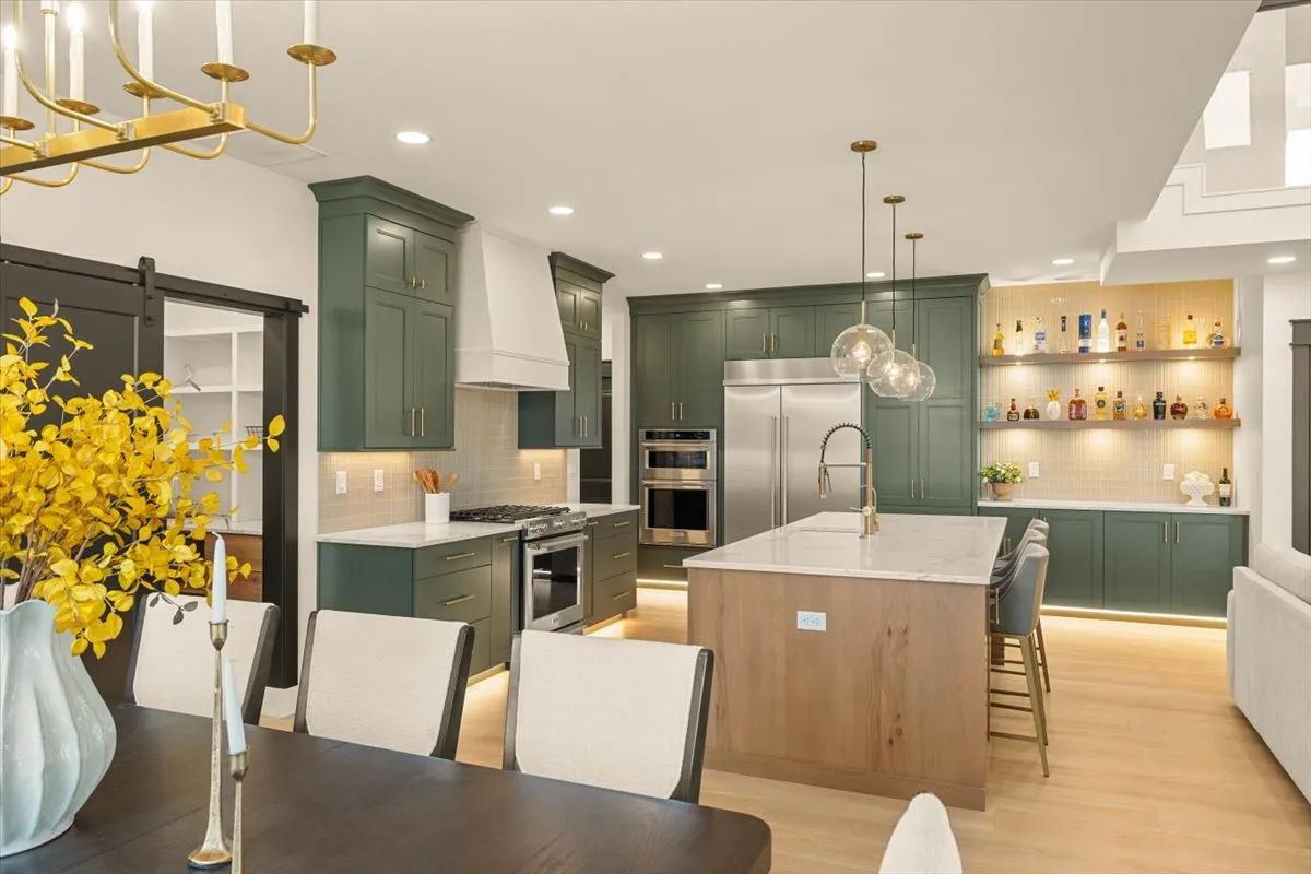 Drawing on expert opinions from colleagues at Kitchens Plus, Minkoff said what really sets their kitchens apart is attention to detail. For this build, the kitchen is a stunning blend of Shade Grown Green cabinets, Glacier Quartz countertops, and a large butler’s pantry with ample shelving and additional countertop space for small appliances, including a coffee maker and a toaster.